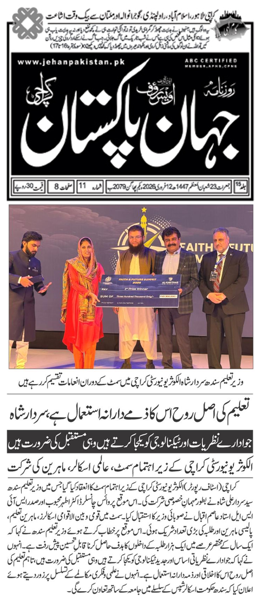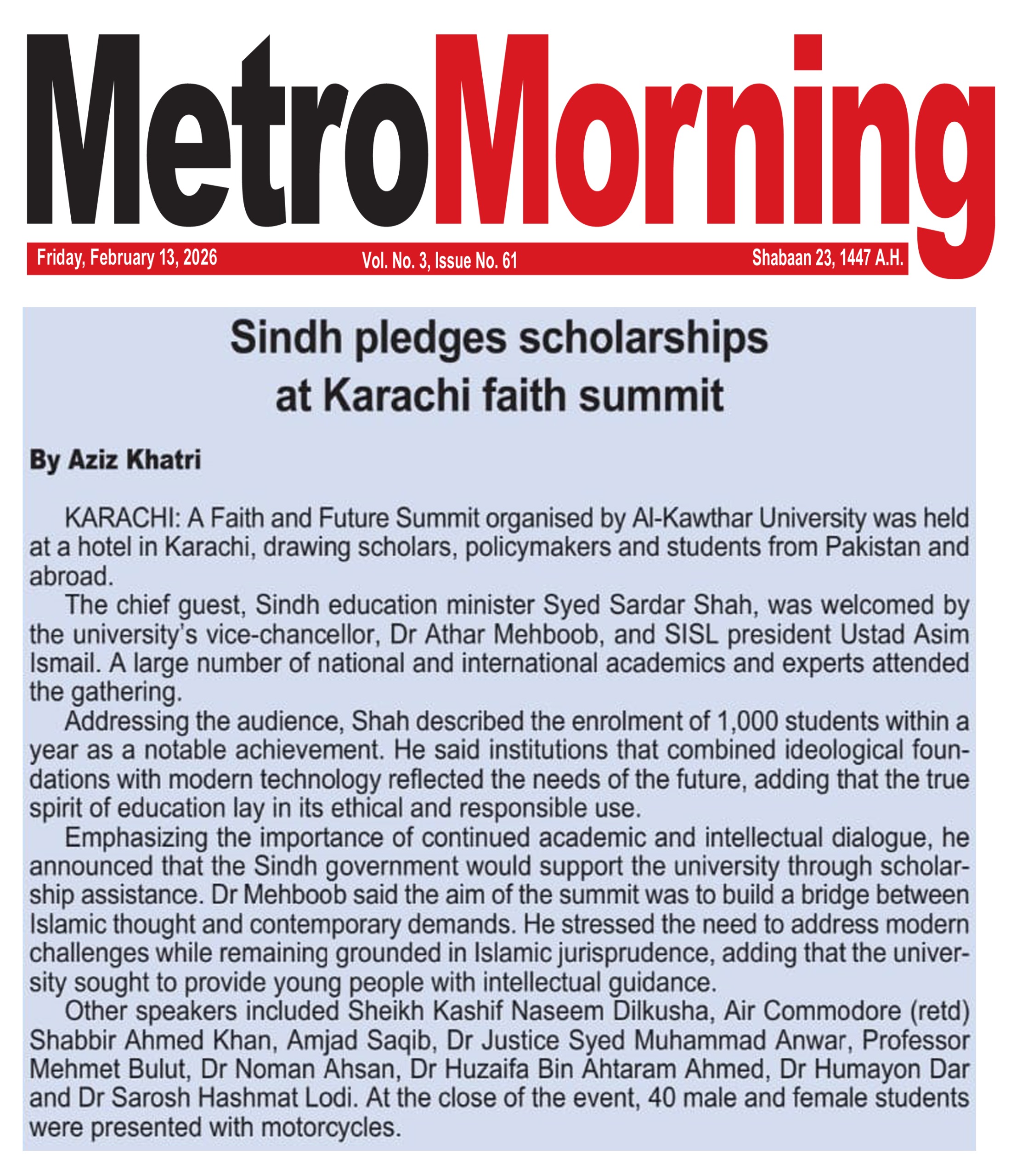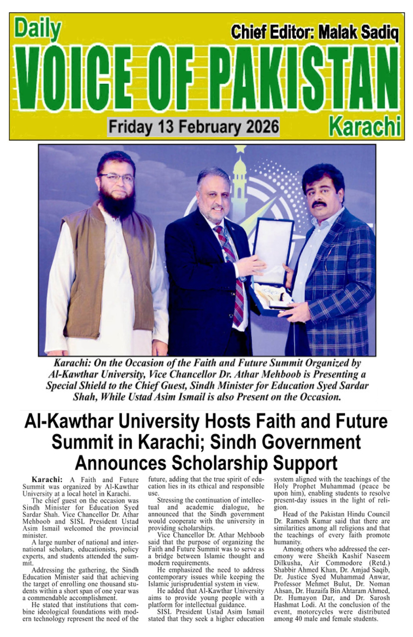The Faith & Future Summit 2026 received extensive coverage across leading national newspapers and media platforms. Prominent publications highlighted the summit’s impact, distinguished guests, academic contributions, and scholarship announcements.